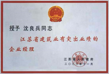 沈良兵主席被评为江苏省建筑业突出业绩的企业经理