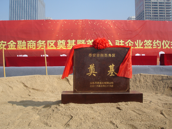 2016年3月26日上午,集团河北公司承接的山东泰安金融商务区项目举行隆重奠基仪式。该项目一期工程建筑面积为35.1万平方米,高度180米双子座超高层写字楼,为泰安城市级建筑地标。 该项目功能定位为泰安的金融服务中心、政务服务中心、文化传播中心、旅游商业服务中心的集聚区。
