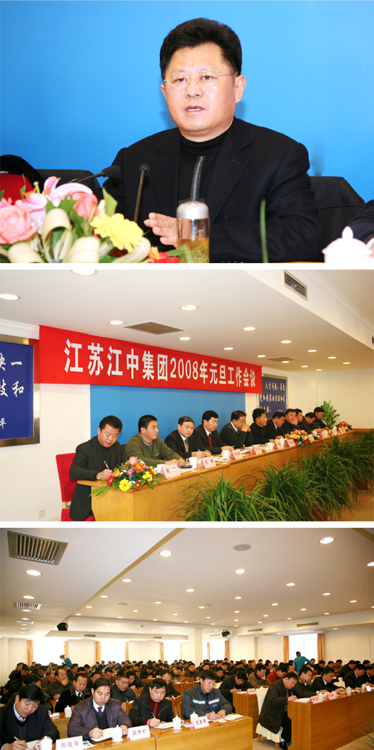 2008年元月1日至3日,江苏江中集团2008年元旦工作会议在集团培训中心举行。集团领导班子成员和各土建分公司正副总经理(大项目经理),各专业公司董事长(执行董事),各下属公司党支部书记、技术、安全、经济、财务负责人,总公司部(室)全体人员参加了会议。