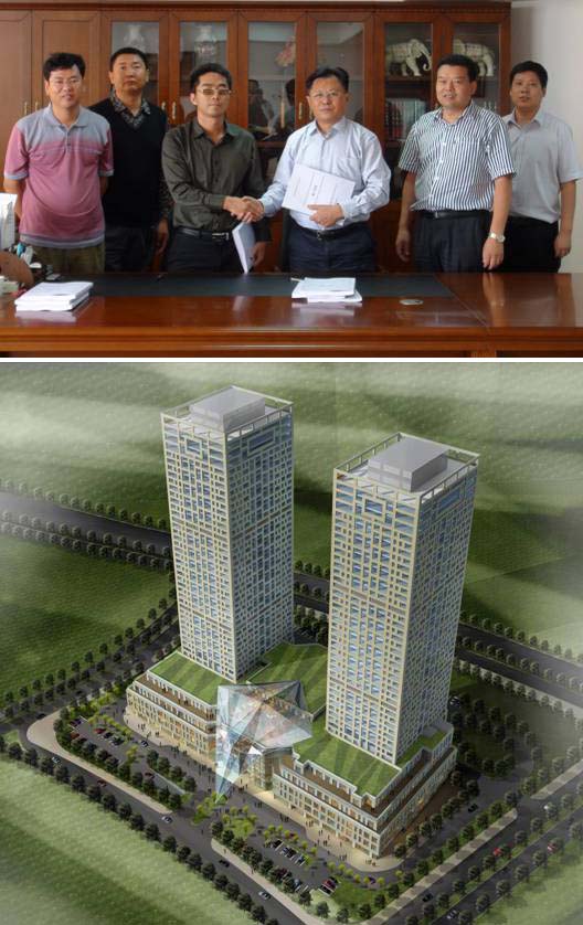 2010915日,我集团新接的鄂尔多斯水岸金钻大厦项目在鄂尔多斯成功签约,集团董事局主席沈良兵与内蒙古亿家和房地产开发有限公司董事长王强共同签署了项目施工合作文本。