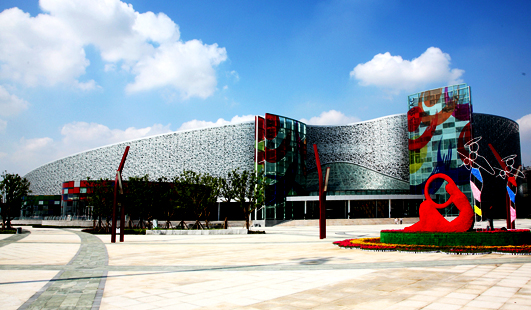 集团总承包施工的科技文化艺术中心位于苏州工业园区金鸡湖畔的文化水廊景区,临水而筑。地块呈椭圆形,伸入湖面之中,总建筑面积16多万平方米。方案由世界著名建筑大师保罗?安德鲁(Paul Andreu)设计,设计理念中最核心的就是“一颗珍珠、一段墙和一个园林”。这三个苏州的传统元素体现了科技文化艺术中心在建筑美学上的立意。科文中心造型为一独具匠心的开口向湖心延伸的椭圆形建筑,外型呈“新月牙”状,与金鸡湖湖面相呼应,核心是一块花园环抱的“玻璃岩”。整幢建筑计理念新颖,形象鲜明,造型简洁、明快,犹如金鸡湖上的一颗璀璨明珠,气度非凡。项目总体功能分为“科技中心”、“演艺影视中心”及商业设施三部分。