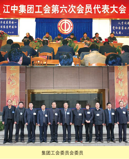 2011年2月6日上午,江苏江中集团工会第六次代表大会在集团培训中心召开。如皋市总工会主席刘建明到会祝贺。大会选举产生了新一届集团工会委员会、经费审查委员会和女职工委员会,选举沈岳、王甫正、吴新泉、石征梅、周建华、江亚平、沈忠武、宋培军、张松祥、环加国、沈永明11名同志为工会委员,经过大会直选,选举沈岳同志为工会主席,王甫正、吴新泉、石征梅3位同志选为工会副主席。