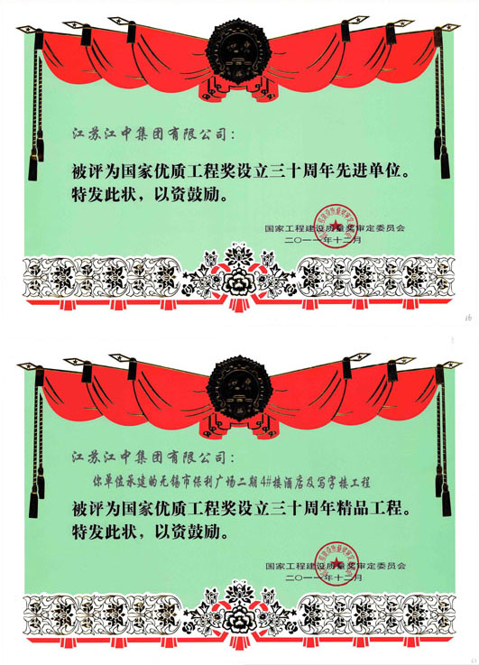 2011年12月27日,中施企协在北京人民大会堂举行“国家优质工程奖设立30周年纪念大会”。我集团荣获2011年国家优质工程奖30年先进单位、国家优质工程奖30年精品工程奖