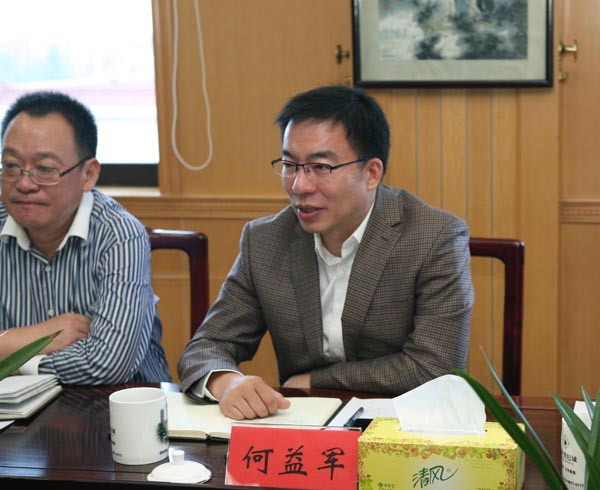 20161013日,如皋市委副书记、市长何益军率领如皋市委常委、市纪委书记史有根、市人大常委会副主任张元健、和市政府办、发改委、建工局、法院、检察院等部门和单位负责人到我集团进行调研。吴窑镇党委、政府领导陪同调研,集团董事长沈良兵、党委书记沈岳接待何市长一行。