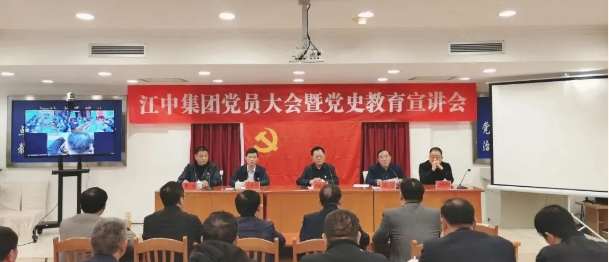 近日,集团召开了党员大会暨党史教育宣讲会,集团董事局主席沈良兵,党委书记沈岳,总裁沈锋,集团党委副书记、纪检书记、江中房产公司董事长环加和,吴窑镇组织委员石光富及集团总公司和近区域分公司支部党员参加了会议并同步远程连接部分分公司党支部参会。