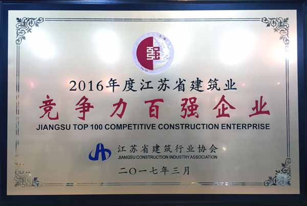 会上布了2016年度江苏省建筑业双百强企业评价排名结果,集团荣获江苏省建筑业竞争力 百强企业