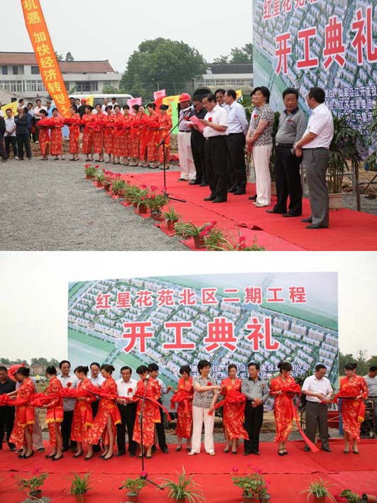 2010年68日由我集团总承包施工的如皋港红星花苑二期工程举行开工典礼,南通市副市长、如皋市委书记陈惠娟、如皋市人大常委会副主任佘明高、如皋市副市长杜永宏等领导到场剪彩。该工程为农民安置房,建筑面积17.38万平方米,造价约2亿元。