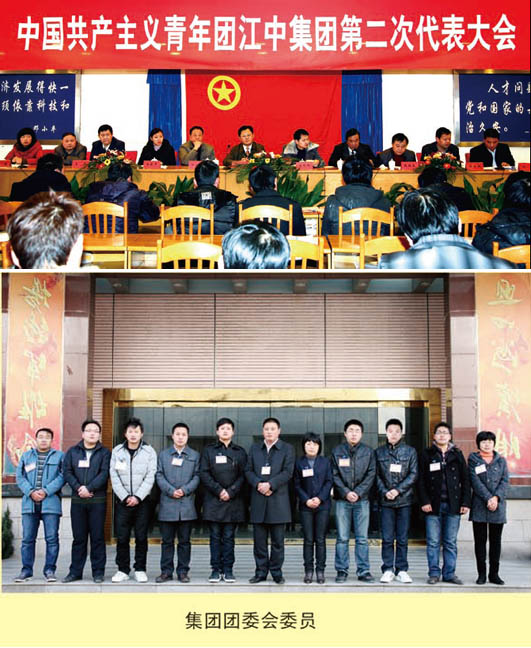 2011年2月6日下午,共青团江苏江中集团委员会第二次代表大会在集团培训中心召开,共青团如皋市委书记吴冰冰到会祝贺。大会选举产生了新一届集团共青团委员会,选举沈锋、冯艳、张俊杰、吴楠、沈旭、沈刘兵、黄海霞、环志林、沈顾军、周晶晶、袁栋11位同志为集团共青团第二届委员会委员。经集团共青团第二届一次全委会选举,选举沈锋同志为集团团委书记,冯 艳、张俊杰、吴楠3名同志选为集团团委副书记。