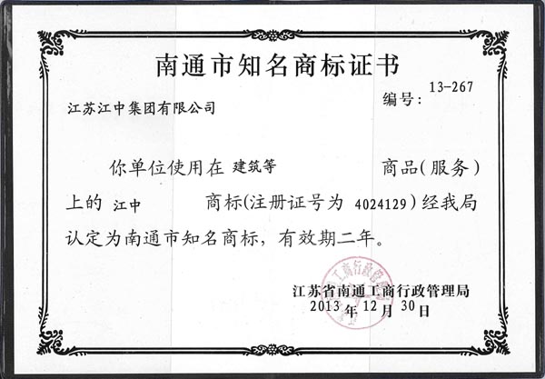 集团“江中”荣获江苏省著名商标、南通市知名商标