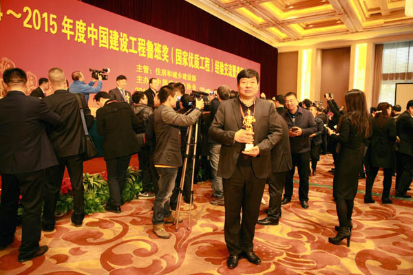 2015年11月17日上午, 2014~2015年度中国建设工程鲁班奖(国家优质工程)表彰大会在北京钓鱼台国宾馆隆重召开。住房城乡建设部、建筑业协会等单位的领导及获奖单位代表近千人参加了会议。我集团总承包施工的海安中洋高尔夫公寓项目荣获此殊荣,集团董事长沈良兵应邀出席颁奖仪式,并上台领奖。